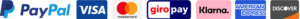 Zahlarten: PayPal, Klarna, Rechnung, Kreditkarte.